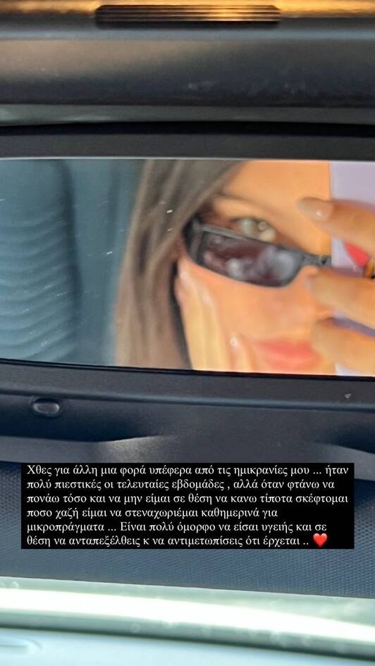 «Χθες, για άλλη μια φορά υπέφερα από τις ημικρανίες μου. Ήταν πολύ πιεστικές οι τελευταίες εβδομάδες αλλά, όταν φτάνω να πονάω τόσο και να μην είμαι σε θέση να κάνω τίποτα, σκέφτομαι πόσο χαζή είμαι να στεναχωριέμαι καθημερινά για μικροπράγματα. Είναι πολύ όμορφο να είσαι υγιής και σε θέση να ανταπεξέλθεις και να αντιμετωπίσεις ό,τι έρχεται», έγραψε χαρακτηριστικά στην ανάρτησή της η Χαρά Παππά.