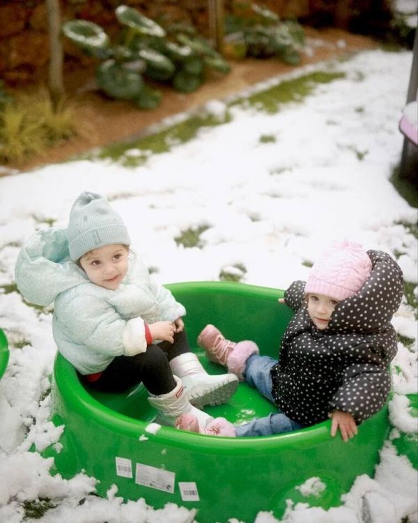Οι μικρούλες έπαιξαν με το χιόνι.