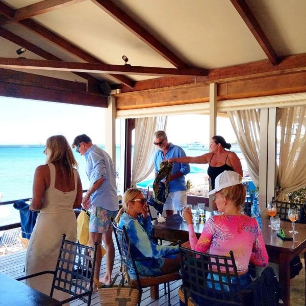 Στην επίσκεψή του στο εστιατόριο στο Πυθαγόρειο.