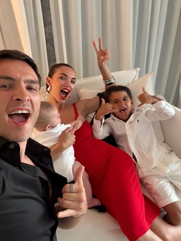 Σε μια από τις φωτογραφίες, ο Ed Westwick έχει θαφτεί κάτω από την καυτή άμμο σε γνωστή παραλία του νησιού την ώρα που παίζει με τον μεγαλύτερό του γιο.