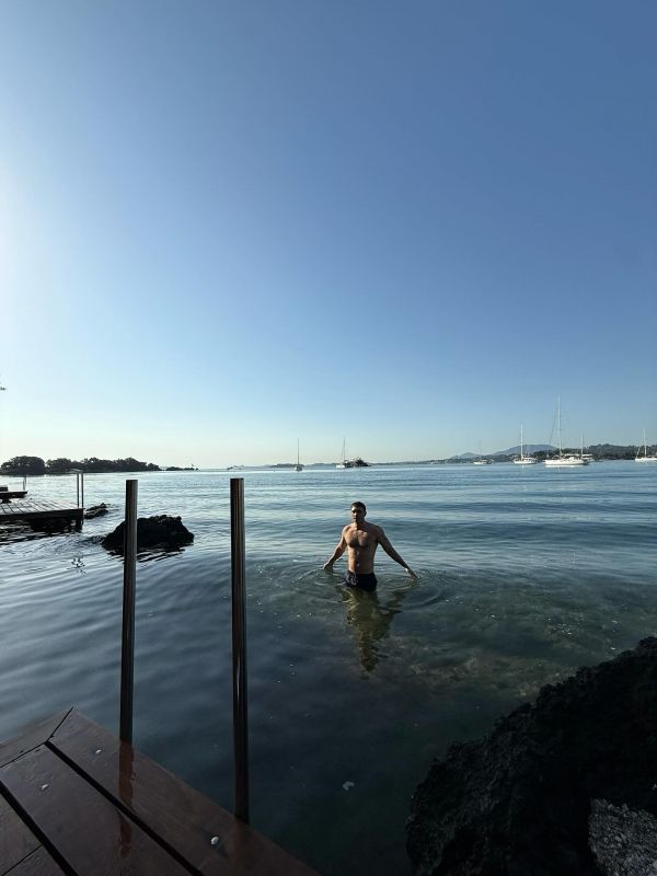 Η σύζυγός του Amy Jackson και τα δυο παιδιά τους χαλάρωσαν σε πολυτελές ξενοδοχείο το οποίο είναι γνωστό για τη μαγευτική του θέα, τη διακριτική πολυτέλεια και τις υπηρεσίες πέντε αστέρων και απόλαυσαν τα γαλαζοπράσινα νερά του Ιονίου.