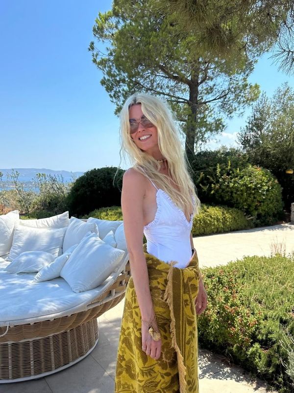 Ένα μαγιό που αγκαλιάζει το σώμα της, ενώ τα μακριά ξανθά μαλλιά και τα γυαλιά ηλίου συμπληρώνουν το απόλυτο καλοκαιρινό look.