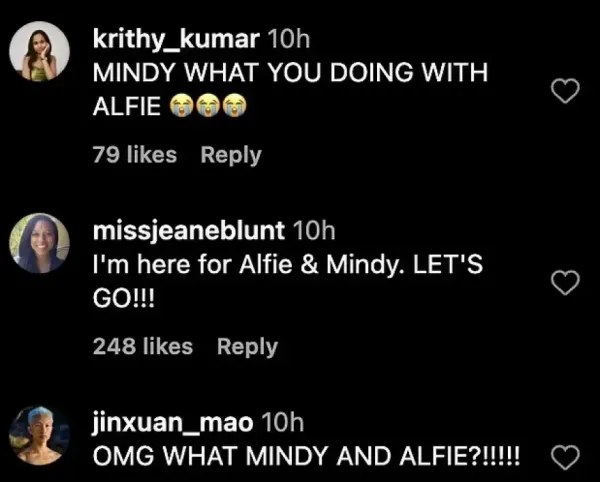 Μια από τις νέες φωτογραφίες δείχνει τη Μίντι να αγκαλιάζει παθιασμένα τον Άλφι, πρώην σύντροφο της Έμιλι. Οι δυο τους κοιτάζονται έντονα ενώ χορεύουν, με τη Μίντι να κρατά το πρόσωπό του και τον Άλφι να τη σηκώνει, δείχνοντας μεγάλη χημεία. Η Έμιλι και ο Άλφι είχαν χωρίσει στο φινάλε της τρίτης σεζόν το 2022, όταν εκείνος πίστεψε πως ήταν «δεύτερη επιλογή» σε σχέση με τον Γκαμπριέλ.