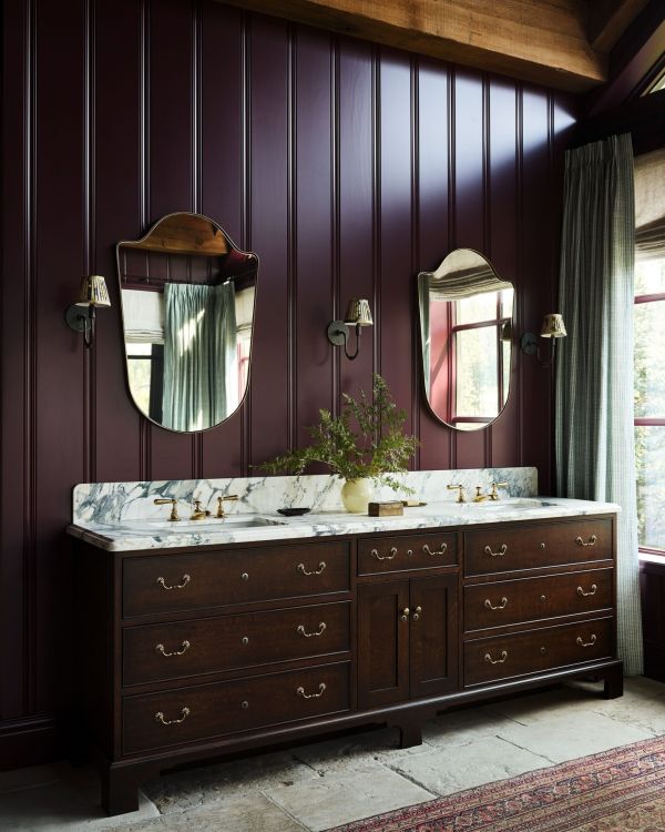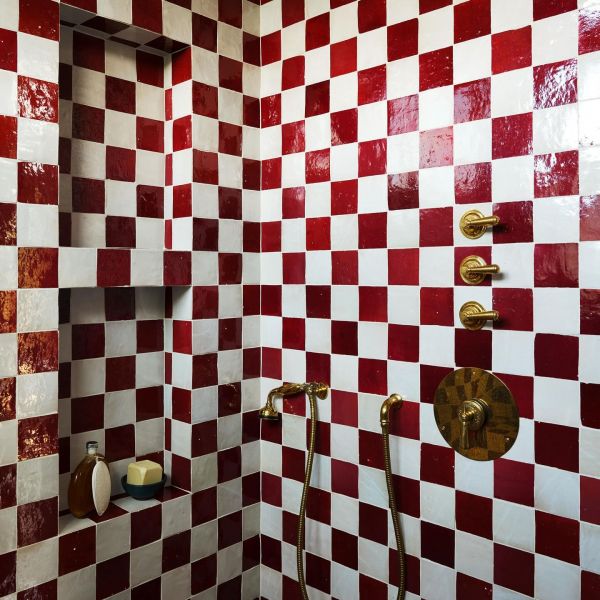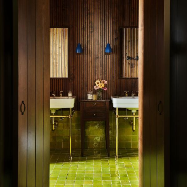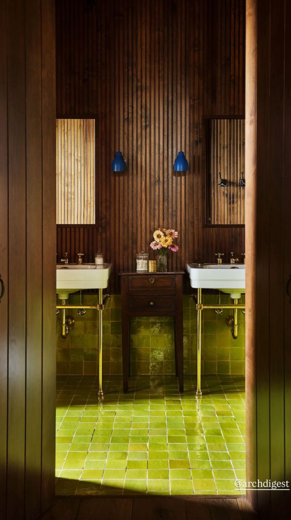 Στα μπάνια του σπιτιού κυριαρχούν έντονα χρώματα και το καθένα από τα τρία έχει το δικό του ξεχωριστό στιλ.