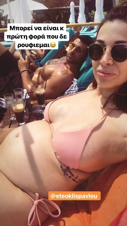 Το μεσημέρι του Σαββάτου, το ζευγάρι, απόλαυσε τον ανοιξιάτικο ήλιο και τη θάλασσα και η όμορφη μέλλουσα μανούλα, μας έδειξε την φουσκωμένη κοιλίτσα της, ποζάροντας με μπικίνι, χωρίς φίλτρα και ρετούς!