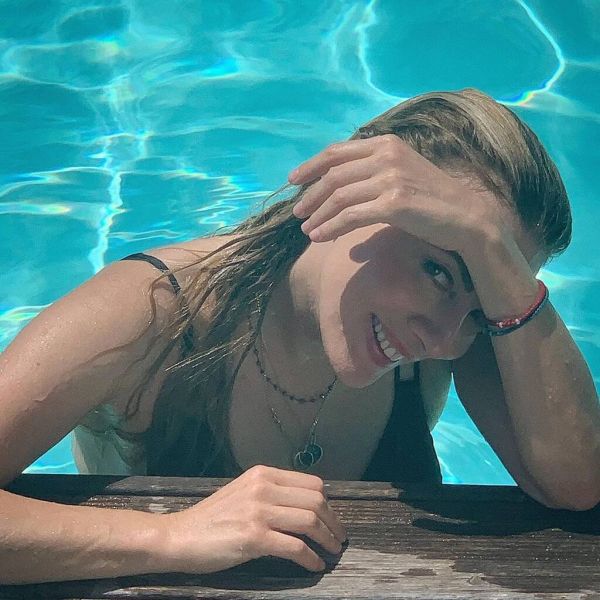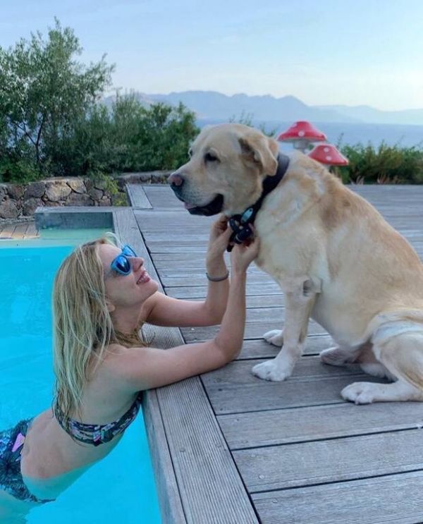 Στιγμές χαλάρωσης στην πισίνα με τον αγαπημένο της σκύλο.
