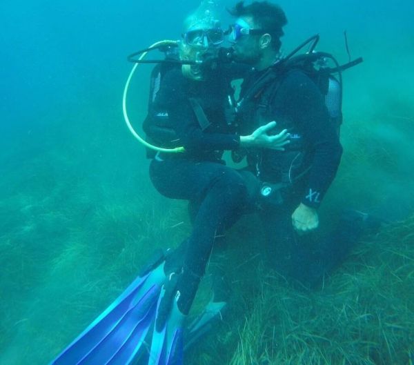 φιλιά στο βυθό της θάλασσας με τον σύζυγό της.