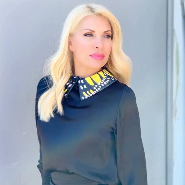Η Ελένη Μενεγάκη έκανε μία διαφορετική εμφάνιση! Η παρουσιάστρια επέλεξε ένα μαύρο σατέν φόρεμα σε ίσια γραμμή και μόνο ο γιακάς του ήταν στις αποχρώσεις του κίτρινου και του λευκού.