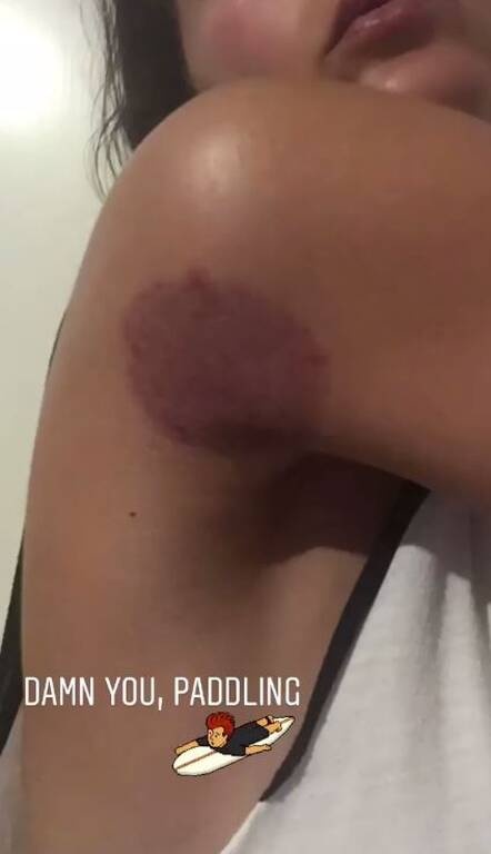Η ίδια χτύπησε λιγάκι με αποτέλεσμα να δημιουργηθεί ένας μώλωπας κάτω από τον ώμο της.