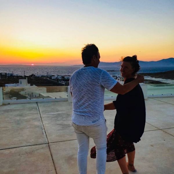 Έτσι λοιπόν αυτό το πρώτο καλοκαίρι η κουμπάρα του ζευγαριού, τους φιλοξένησε μιας που ο Στράτος Τζώρτζογλου με τη γυναίκα του, Σοφία Μαριόλα είναι στο νησί.