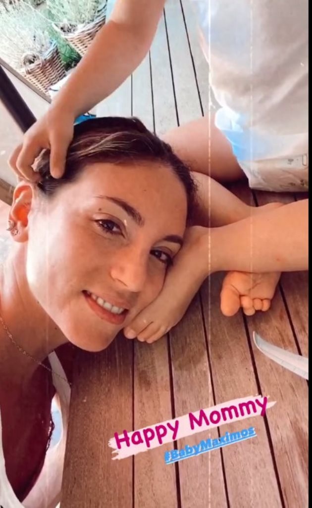 Η Αθηνά Οικονομάκου δέχεται τα χάδια του μικρού Μάξιμου και ταυτόχρονα κάνει το νέο της insta story για το προφίλ της στο Instagram.