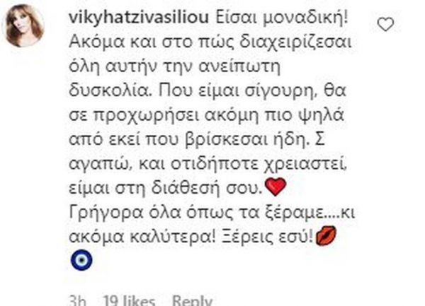 «Κορίτσι μου γλυκό ευχαριστώ τον Θεό που είσαι καλά κ βγήκες αλώβητη από αυτή την περιπέτεια !!! Μας τρόμαξες όλους παρά πολύ αλλά Δόξα το Θεό που σε βλέπω κ σ ακούω καλά !!! Σ αγαπώ πολύ καλή ανάρρωση κ γρήγορα κοντά μας !! Ότι χρειαστείς είμαι εδώ όλο το 24ωρο ❤️❤️❤️♥️♥️», της έγραψε η Πηγή Δεβετζή.