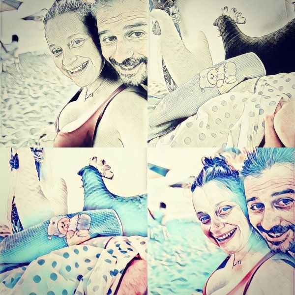 Το ζευγάρι βιώνει την πιο ευτυχισμένη περίοδο της ζωής του και παρά το γεγονός ότι το μωράκι τους ήρθε μέσα στο καλοκαίρι, δεν κλείστηκαν στο σπίτι αφού ο μπέμπης τους έκανε και τα πρώτα του μπανάκια με ασφάλεια.