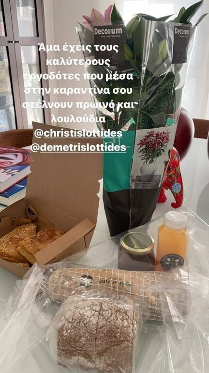 Μάλιστα πόσταρε και μία φωτογραφία στο Instagram και τόνισε νιώθει τυχερός που οι εργοδότες του, τον προσέχουν πολύ και του έστειλαν μέχρι και πρωινό με take away. «Άμα έχεις τους καλύτερους εργοδότες που μέσα στην καραντίνα σου στέλνουν πρωινό και λουλούδια»!