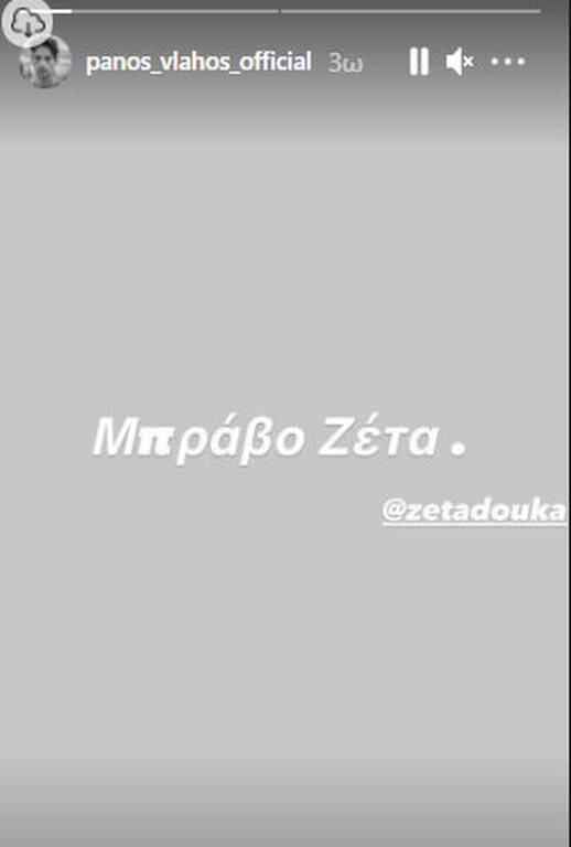 Ανάμεσα τους η Βίκυ Σταυροπούλου, η οποία έγραψε: «Είσαι ένα φωτεινό παράδειγμα», ο Πέτρος Λαγούτης, ο οποίος σημείωσε: «Μπράβο Ζέτα», η Μαρία Ναυπλιώτου, η οποία είναι και πολύ καλή φίλη της Ζέτας: «Σε θαυμάζω, σε αγαπώ, σε εκτιμώ. Μακάρι να ακολουθήσουν το παράδειγμα σου κι άλλες καταπιεσμένες φωνές».