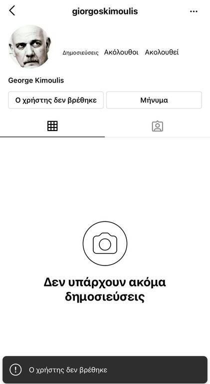 Ο Γιώργος Κιμούλης έσβησε τον προσωπικό του λογαριασμό στο Instagram, όπου μέχρι κι εχθές ήταν ενεργός!