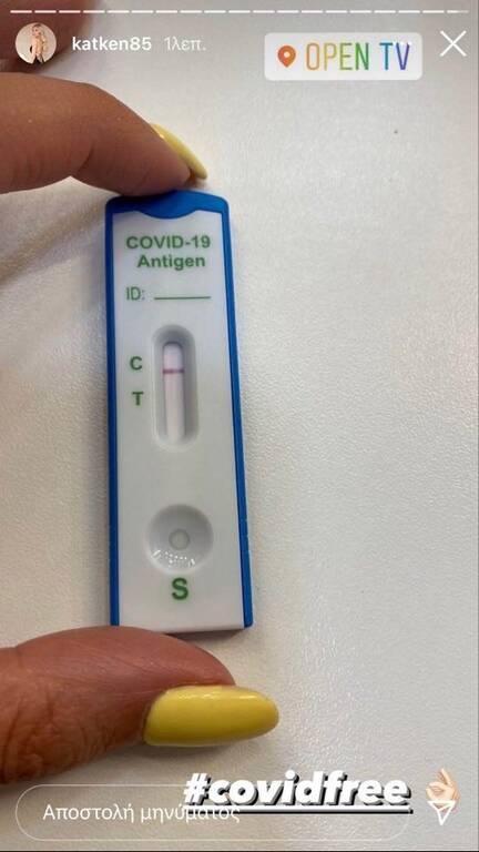 Στο μεταξύ όμως, έκανε άλλο ένα self test, όπως πλέον επιβάλλεται στις περισσότερες επιχειρήσεις, και θέλησε να μοιραστεί το αποτέλεσμα με τους διαδικτυακούς της φίλους, ανεβάζοντας φωτογραφία.