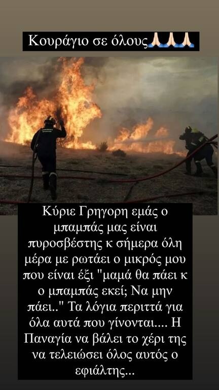 Ο παρουσιαστής έκανε και πολλά stories με ανακοινώσεις για την περίθαλψη ζώων στις πυρόπληκτες περιοχές αλλά και για τη συγκέντρωση ειδών πρώτης ανάγκης για τους ανθρώπους που έχουν μείνει χωρίς στέγη και έχουν την ανάγκη μας.