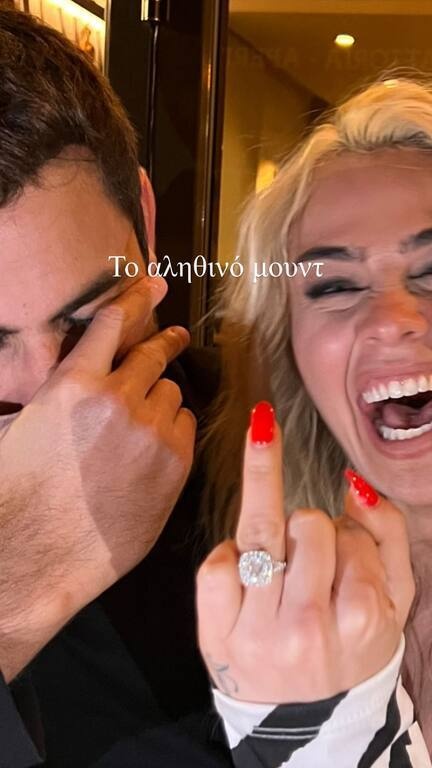 Εδώ και πολύ καιρό, κυκλοφορούσαν φήμες, που τους ήθελαν να προχωρούν τη σχέση τους στο επόμενο βήμα, κάτι που έγινε και επιτέλους γνωστό. Συγκεκριμένα, η τραγουδίστρια είχε δημοσιεύσει μια φωτογραφία, στην οποία απεικονιζόταν χαμογελαστή στο πλευρό του συντρόφου της, Μάριου Καπότση και έδειχνε στους διαδικτυακούς της φίλους ένα εντυπωσιακό μονόπτερο.