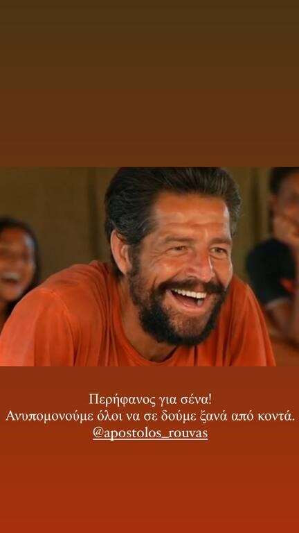 Συγκεκριμένα, ο τραγουδιστής δημοσίευσε μία φωτογραφία με τον Απόστολο Ρουβά και έγραψε χαρακτηριστικά στη λεζάντα: «Περήφανος για σένα! Ανυπομονούμε όλοι να σε δούμε ξανά από κοντά».