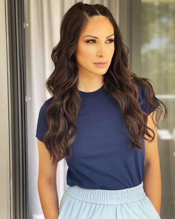Πιο συγκεκριμένα όσον αφορά τα μαλλιά της, τα έκανε σπαστά και πολύ ανάλαφρα ενώ τα έπιασε περίτεχνα στο κέντρο με αποτέλεσμα να ανοίξει το βλέμμα της!