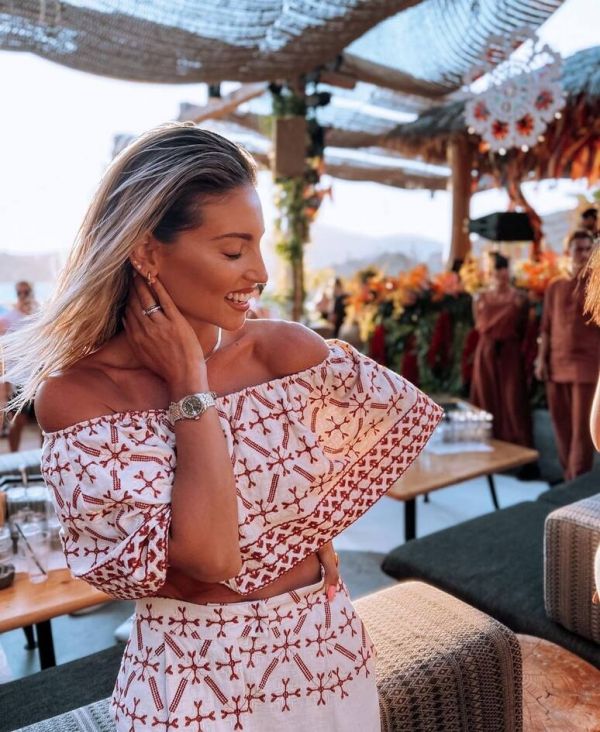Η ηθοποιός βρίσκεται στην Μύκονο, ένα νησί που αγαπά πολύ, καθώς εκεί πραγματοποιήθηκε και ο γάμος της με τον Φίλιππο Μιχόπουλο. Το ζευγάρι έχει αποκτήσει δύο υπέροχα παιδιά, τον Μάξιμο και την Σιέννα.