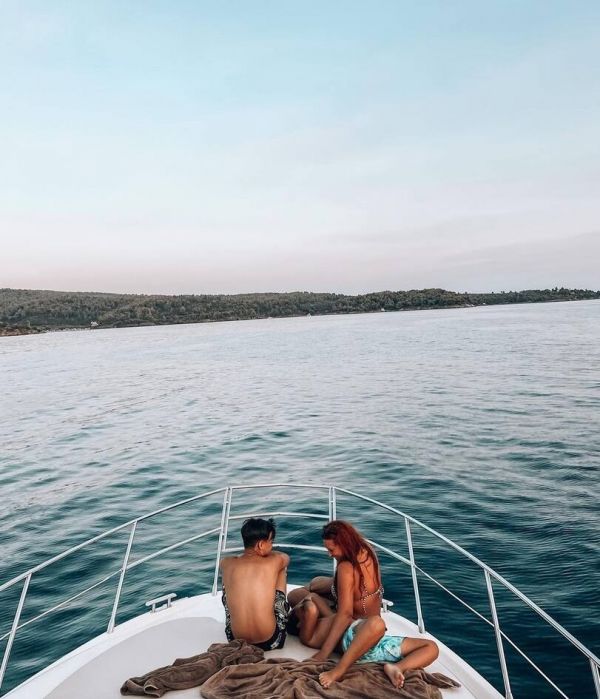 Οι πρώτες φωτογραφίες της από τις βουτιές της ήταν με ολόσωμο μαγιό, αλλά για τα επόμενα μπάνια της προτίμησε το μπικίνι...
