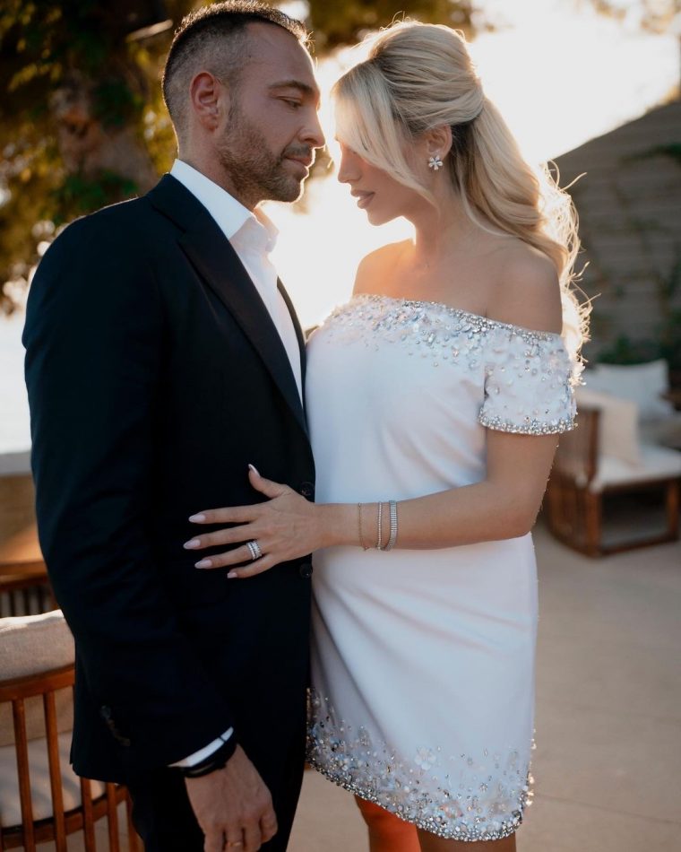 Να θυμίσουμε ότι το ζευγάρι παντρεύτηκε με πολιτικό γάμο. Η εγκυμονούσα επέλεξε ένα υπέροχο κοντό φόρεμα δια χειρός Σήλιας Κριθαριώτη και όπως έγινε γνωστό από τον Δήμαρχο που τους πάντρεψε, συγκινήθηκε κατά τη διάρκεια της τελετής.