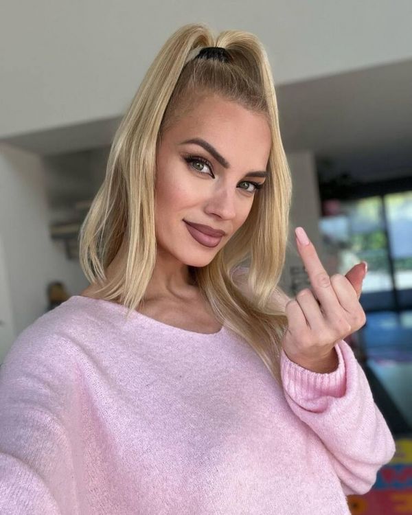 «Ένα ωραιότατο δαχτυλάκι σε όλους εκείνους που προσπάθησαν να με υποτιμήσουν Λέγοντας πως λόγω της καταγωγής μου που είναι από την Ουκρανία ποτέ δεν θα μπορέσω να γίνω τόσο ανώτερη όσο είναι εκείνοι . Ένα μεγάλο σας ευχαριστώ που ασχολείστε μαζί μου και το δαχτυλάκι δείχνει που ακριβός γράφω την δήλωση -άποψη σας . Να είσαστε καλά και στα ανώτερα ! Με πολλή αγάπη πάντα ! Φιλιά»!