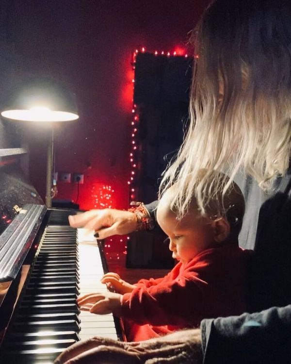 Ο Νίκος κάθεται στο πιάνο, έχοντας στην αγκαλιά του τον γιο του και η Έλενα απαθανάτισε την τρυφερή αυτή στιγμή την οποία και δημοσίευσε στο instagram της γράφοντας στη λεζάντα: «Love of my life – Οι αγάπες της ζωής μου».