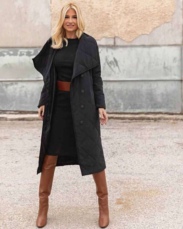 Με τη διαφορά πως αυτή τη φορά συνδύασε δυο χρώματα, τα οποία σίγουρα δεν θα τολμούσες να ταιριάξεις. Κι όμως οι χρωματικές παλέτες πλέον επιτρέπουν και τον απίθανο συνδυασμό μαύρο με καφέ. Επέλεξε λοιπόν ένα στενό μίντι μαύρο φόρεμα το οποίο συνδύασε με καφέ δερμάτινες μπότες και ίδιου χρωματισμού ζώνη στη μέση της.