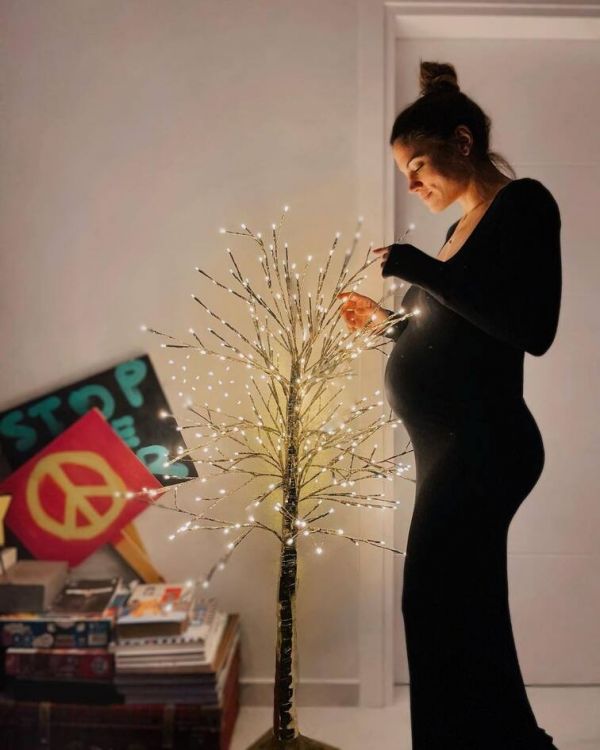 Το ζευγάρι ντυμένο ασορτί θα υποδεχτεί το 2023 με το μωρό του αγκαλιά.