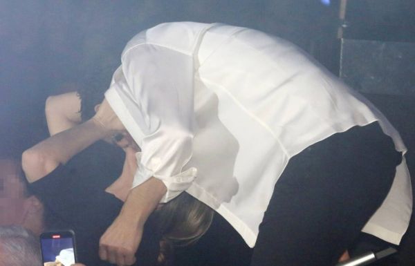 Κατά τη διάρκεια του προγράμματος του και όσο η Κάτια σιγοτραγουδούσε μαζί του σε ένα από τα πρώτα τραπέζια, εκείνος διέκοψε το τραγούδι του και της έδωσε μπροστά σε όλους τους θαμώνες που παρακολουθούσαν έκπληκτοι, ένα παθιασμένο φιλί στο στόμα!