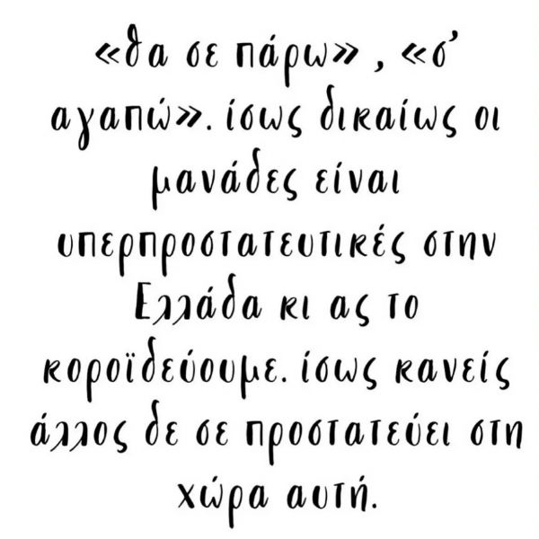 «Δεν υπάρχουν λόγια γι'αυτό που έχει συμβεί...Υπάρχουν μόνο λέξεις.Ανήκουστο ! Απαράδεκτο ! Τρελλό ! Πρωτάκουστο ! Ξεφτίλες ! Ντροπή !...Δεν θα σταθώ όμως εκεί...Εγώ θα μιλήσω σαν μάνα , που έχω ένα και μοναδικό , υπέροχο παληκάρι...Μπαίνω στα παπούτσια αυτών των γυναικών που έχασαν τα παιδιά τους , ή που ακόμα τα αναζητούν , ή που τις ενημερώνουν ότι τα παιδιά τους έχουν απανθρακωθεί ή διαμελιστεί και έτσι απλά δεν θα μπορέσουν ούτε να τα θάψουν ολόκληρα...Μπαίνω σε αυτή τη θέση και σπάει η καρδιά μου ...