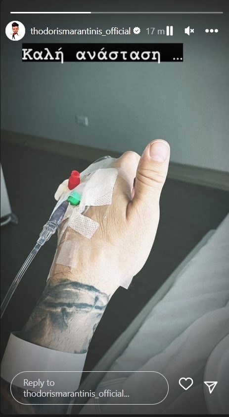 Δύσκολες ώρες για τον Θοδωρή Μαραντίνη! Εύχεται καλή Ανάσταση με ορό στο χέρι μέσα από το νοσοκομείο