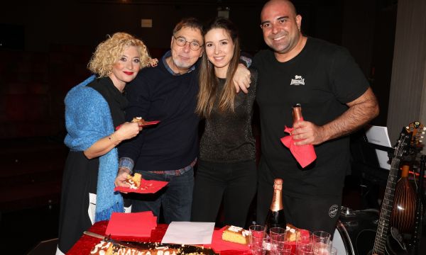 Οι συντελεστές της παράστασης συγκεντρώθηκαν και με χαμόγελο ευτυχίας και χαράς που μπήκε το νέο έτος έκοψαν την Πρωτοχρονιάτικη πίτα τους. Φαίδρα Δρούκα, Θοδωρής Αθερίδης, Αλκιβιάδης Κωνσταντόπουλος και Κατερίνα Παναγιωτάκη πόζαραν την στιγμή του… μοιράσματος.