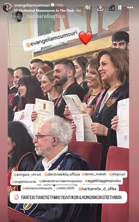 Το πτυχίο της στη δημοσιογραφία πήρε η Ευαγγελία Μουμούρη και αυτή τη σημαντική στιγμή είχε στο πλευρό της τον σύζυγό της, τη μαμά της, το βαφτιστήρι της αλλά και αγαπημένους συναδέρφους.