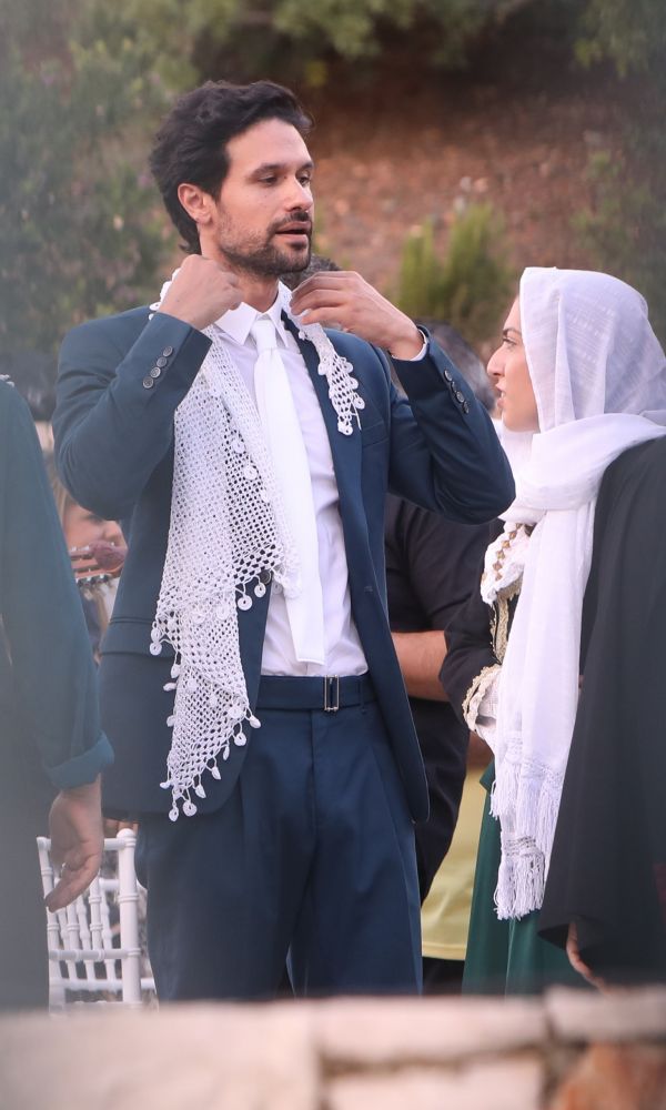 Από νωρίς άρχισαν να καταφθάνουν οι φίλοι του και οι συγγενείς του για να γιορτάσουν όλοι μαζί τις υπέροχες αυτές στιγμές τους. Ο γάμος είχε έντονο άρωμα από Κρήτη αφού ο γαμπρός εμφανίστηκε με κρητικό σαρίκι