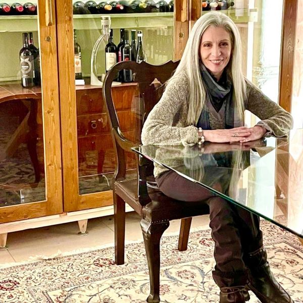 Στα 55 της χρόνια η Γαλήνη Τσεβά παραμένει εξίσου γοητευτική και η εμφάνισή της τα φυσικά γκρίζα μαλλιά της είναι εντυπωσιακή.