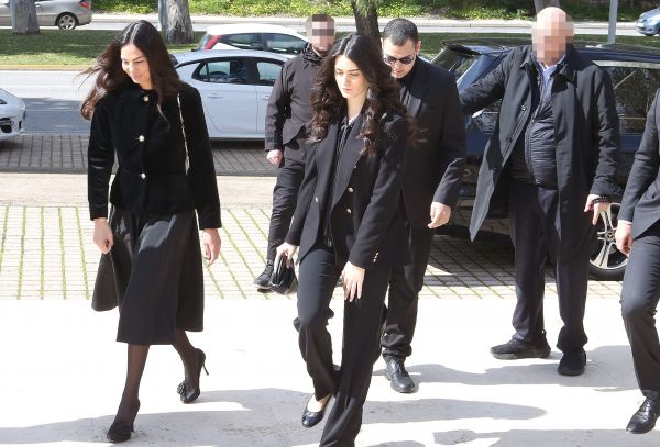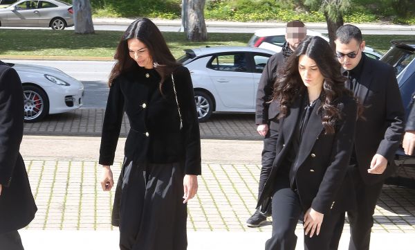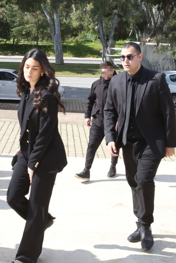 Συντετριμμένα τα παιδιά του Χρήστος και Μάιρα έφτασαν στον ιερό ναό και στο πλευρό τους είναι η μητέρα τους, Εύη Βατίδου.