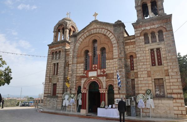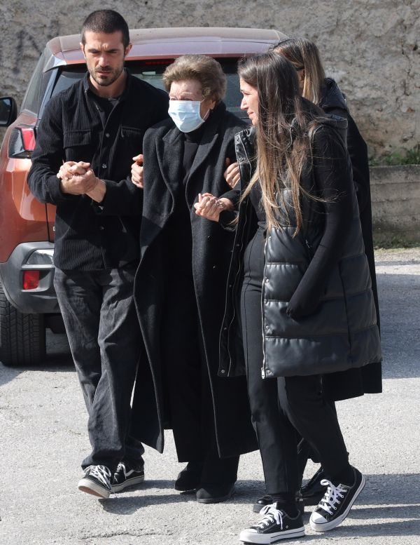 Η μητέρα της ηθοποιού, Αγγελική έφτασε λίγο πριν τις 11 στον ιερό ναό του Αγίου Σπυρίδωνος στο Αίγιο υποβασταζόμενη από τα εγγόνια της μαζί με την άλλη κόρη της, Μαρία.