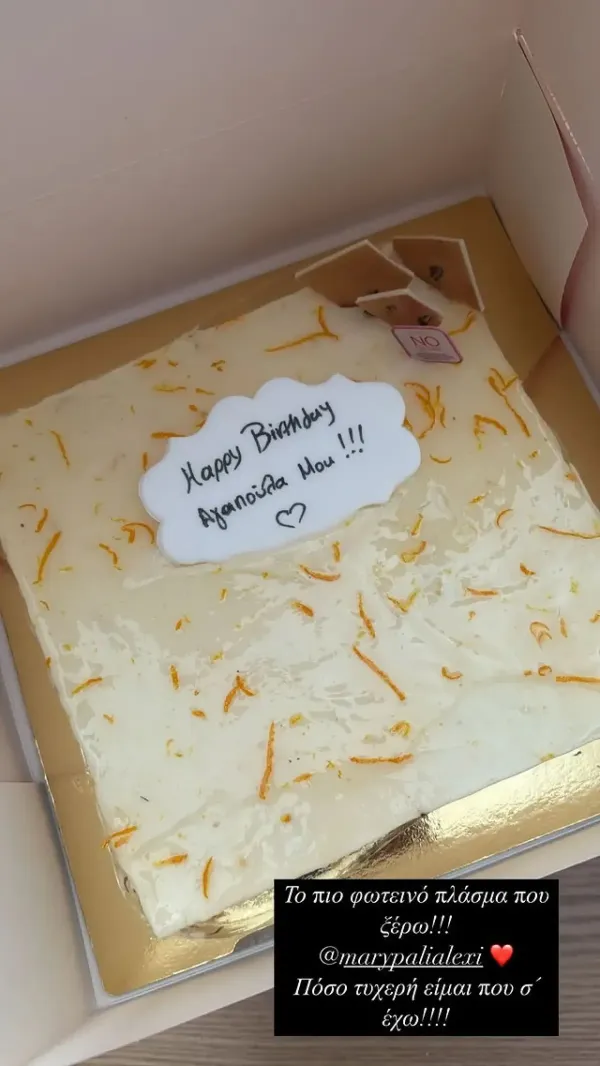 Δημοσίευσε και την τούρτα που της έστειλαν οι φίλες της, γράφοντας χαρακτηριστικά: «Το πιο φωτεινό πλάσμα που ξέρω!!! Πόσο τυχερή που σ΄έχω!!!».
