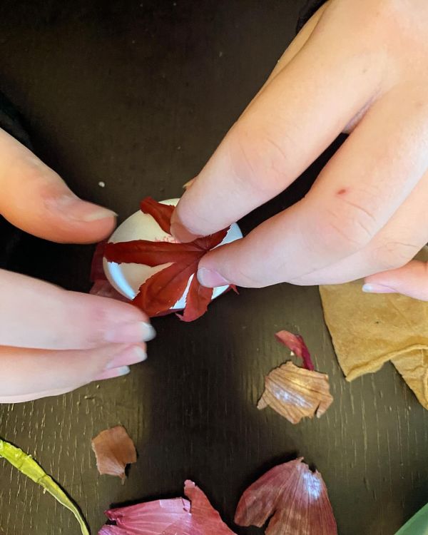 Οι τρεις τους έβαψαν τα αυγά με φυσικούς πάντα τρόπους και ιδίως τα παιδιά της παρουσιάστριας το καταχάρηκαν.