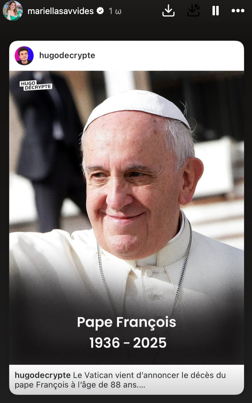 Πάρα πολλοί celebrities μεταξύ αυτών και η Μάρα Ζαχαρέα έκαναν αναρτήσεις στα social media, αμέσως μόλις έγινε γνωστή η είδηση του θανάτου του Πάπα Φραγκίσκου.
