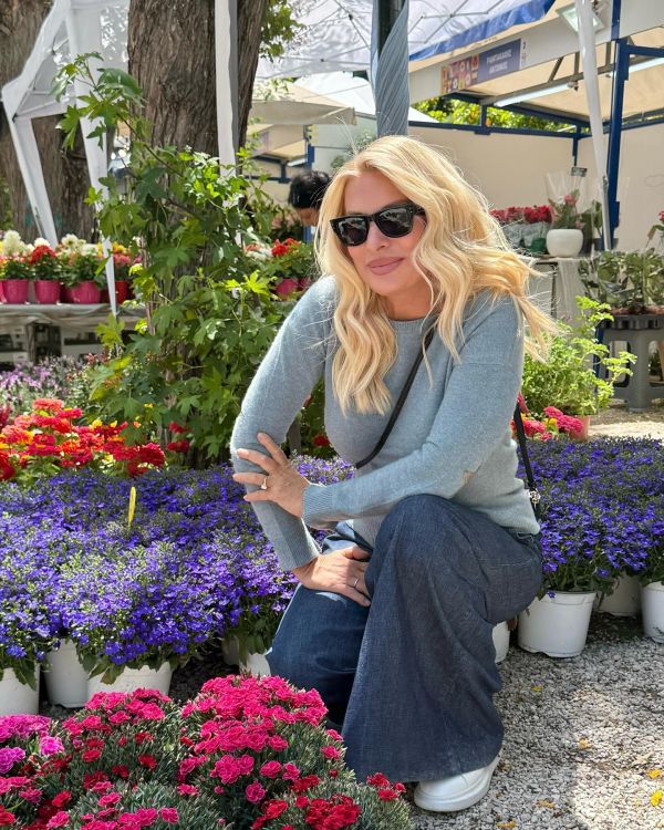 Ελένη Μενεγάκη: Στυλάτη στο ραντεβού της στην Κηφισιά - Χαμένη μέσα στα λουλούδια