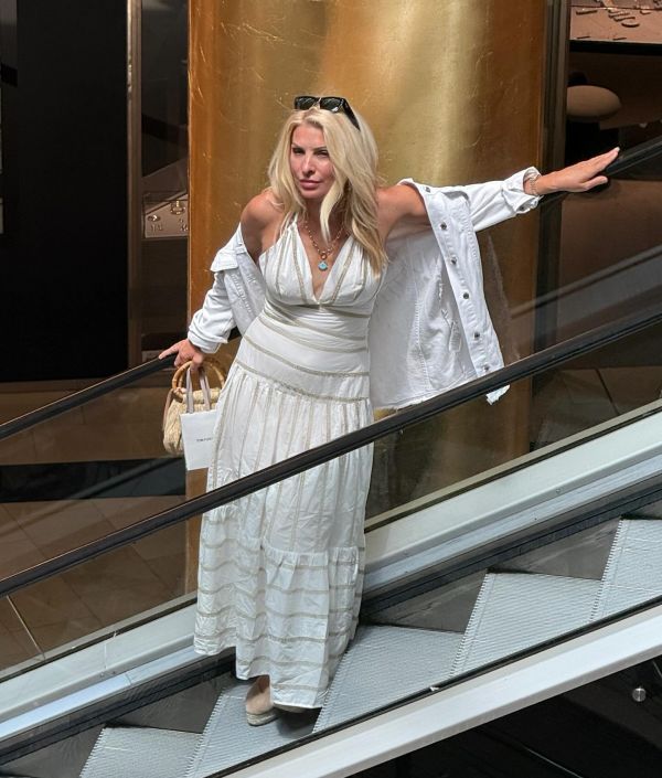 Η Ελένη Μενεγάκη σε καλοκαιρινή διάθεση βολτάρει σε μεγάλο εμπορικό κέντρο των βορείων προαστίων.