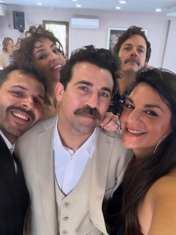 Ο γαμπρός ανάμεσα σε φίλους και εκείνος και τρισευτυχισμένος.