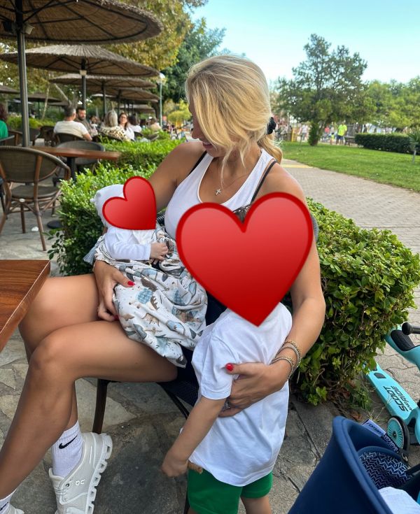 Φορώντας μπικίνι που τόνιζε τους κοιλιακούς της και με τον ένα της γιο αγκαλιά και τον άλλον δίπλα της πόζαραν μέσα στο νερό. Η παρουσιάστρια δημοσίευσε μία και μοναδική φωτογραφία στον προσωπικό της λογαριασμό στο instagram γράφοντας: «Όλος μου ο κόσμος».