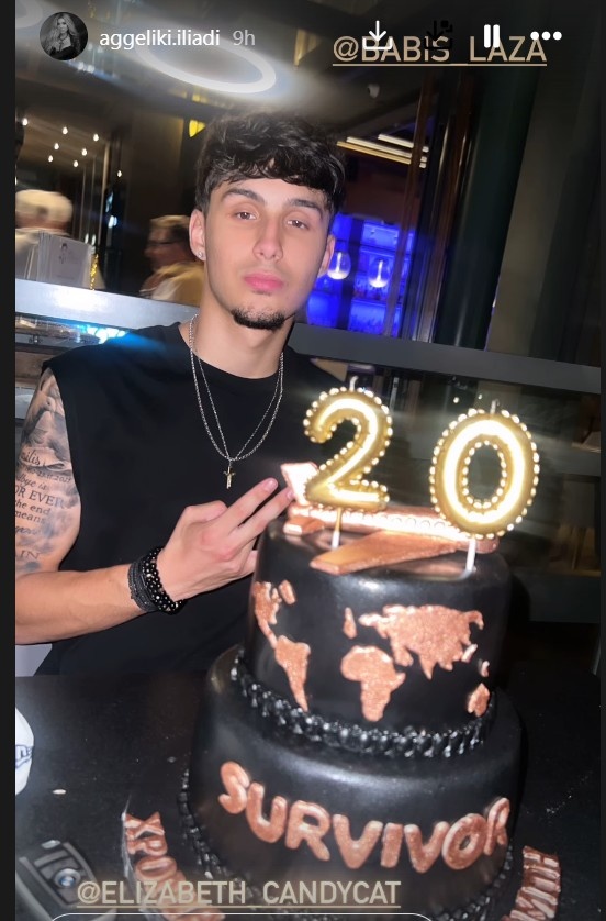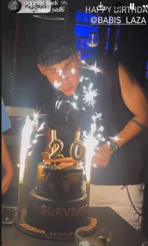 Η εντυπωσιακή σοκολατένια τούρτα έγραφε “survivor” και είχε επάνω τον αριθμό 20 με χρυσά κεράκια και μία εντυπωσιακή βεγγαλική ρουκέτα που ξεχώριζε!