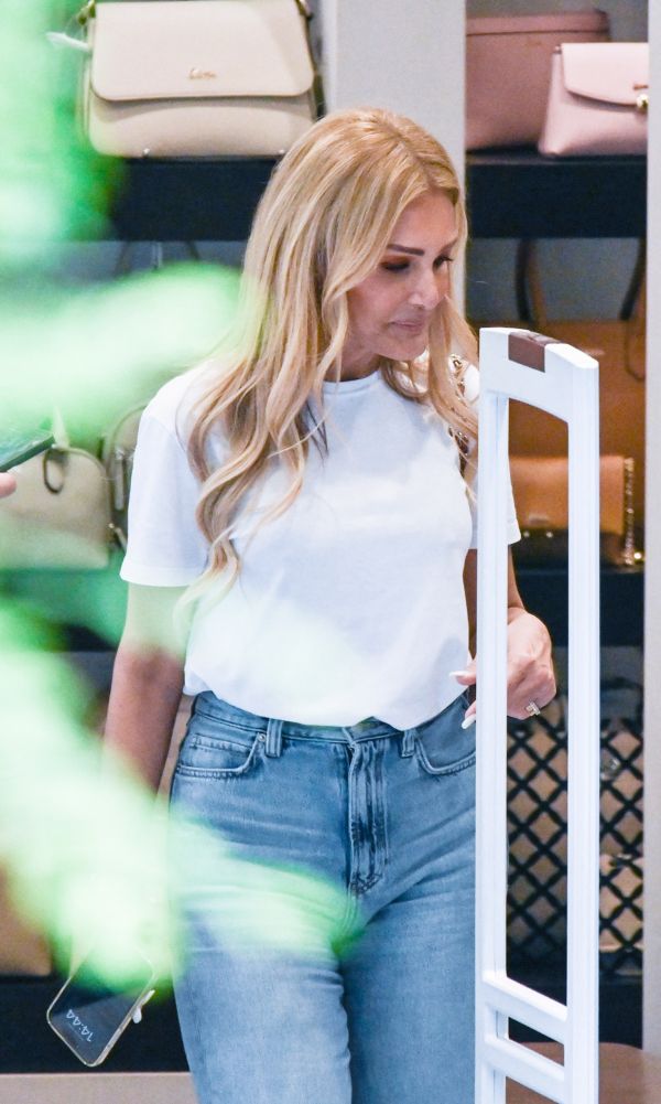 Η Νατάσα Θεοδωρίδου για την βόλτα της στα μαγαζιά επέλεξε ένα ψηλόμεσο τζιν παντελόνι με ένα λευκό T-shirt και λευκά σνίκερς και ασορτί ήταν ντυμένη ντυμένη ήταν και η ανιψιά της.